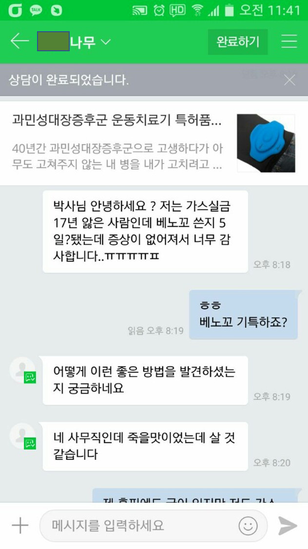 전화로 감사인사를 하시는 분들이 대부분인데, 이렇게 톡을 주셔서 기록이 남았습니다.
